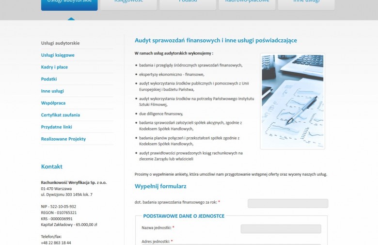 Realizacja strony internetowej oraz projekt logotypu dla biura księgowego Rachunkowość i Weryfikacja.