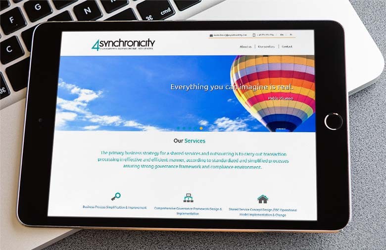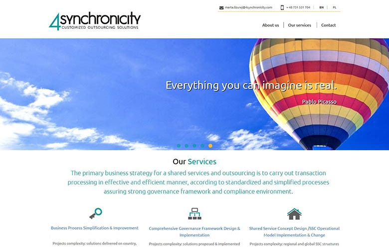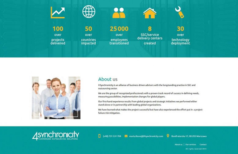 Realizacja wizerunkowej strony internetowej dla firmy 4Synchronicity. Strona jest w pełni responsywna.