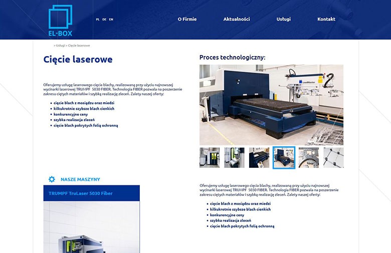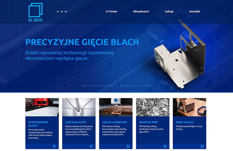 Realizacja responsywnej i przejrzystej strony dla firmy Elbox. Firma zajmuje się cięciem laserowym, gięciem i cięciem blachy.
