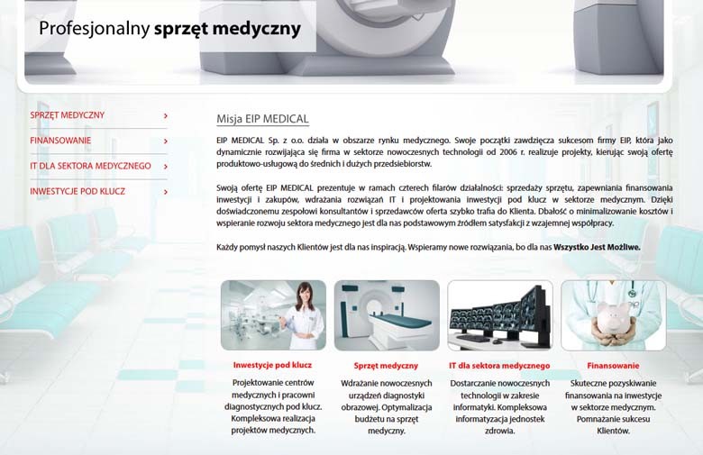 Projektowanie i wdrożenie strony internetowej dla EIP Medical. Przeprowadzenie kampanii reklamowej w Google Adwords.