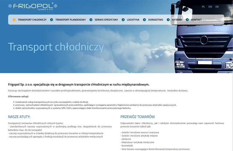 Stworzenie nowego serwisu dla firmy logistycznej Frigopol. Strona jest w pełni responsywna (RWD) i skaluje się do mniejszych rozdzielczości (smartfony, tablety). Strony internetowe z dobrą jakością kodu to podstawa do pozycjonwonia.